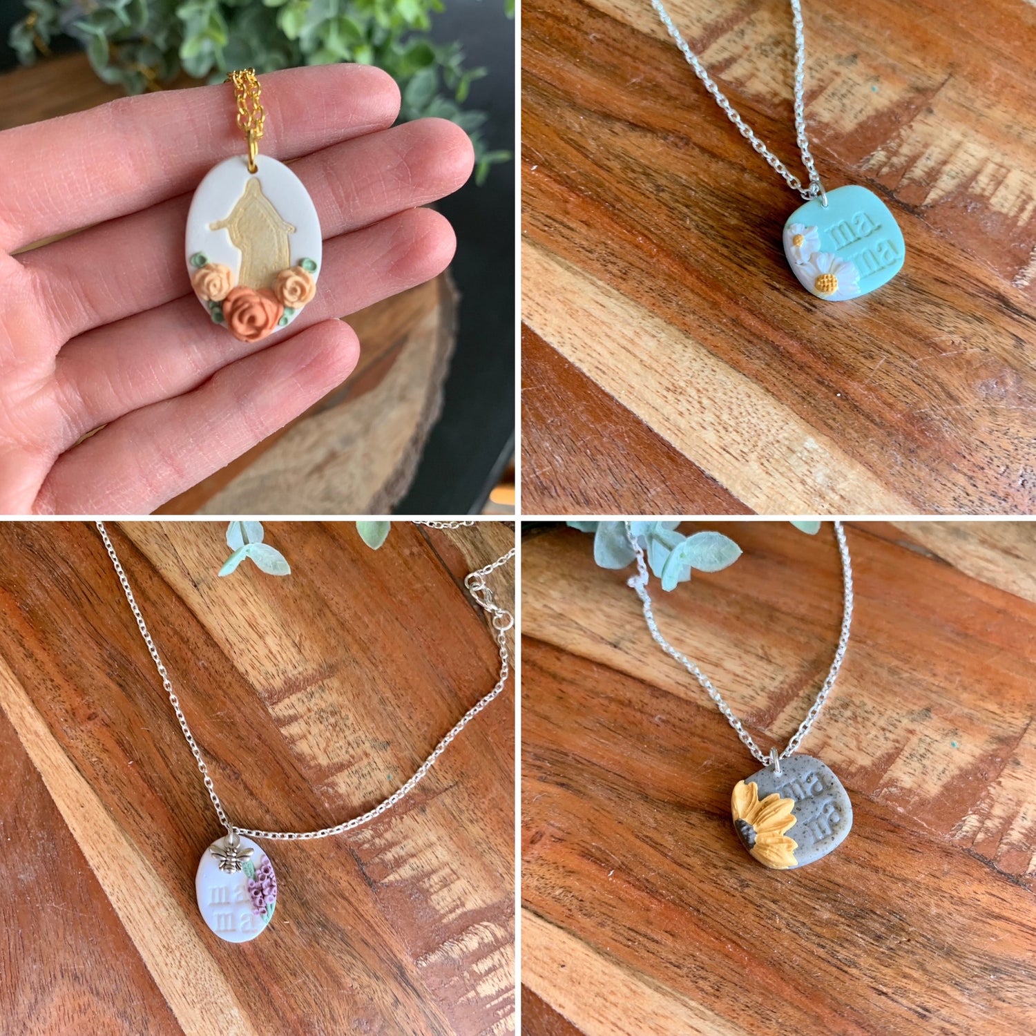 Polymer clay pendants on chain necklaces