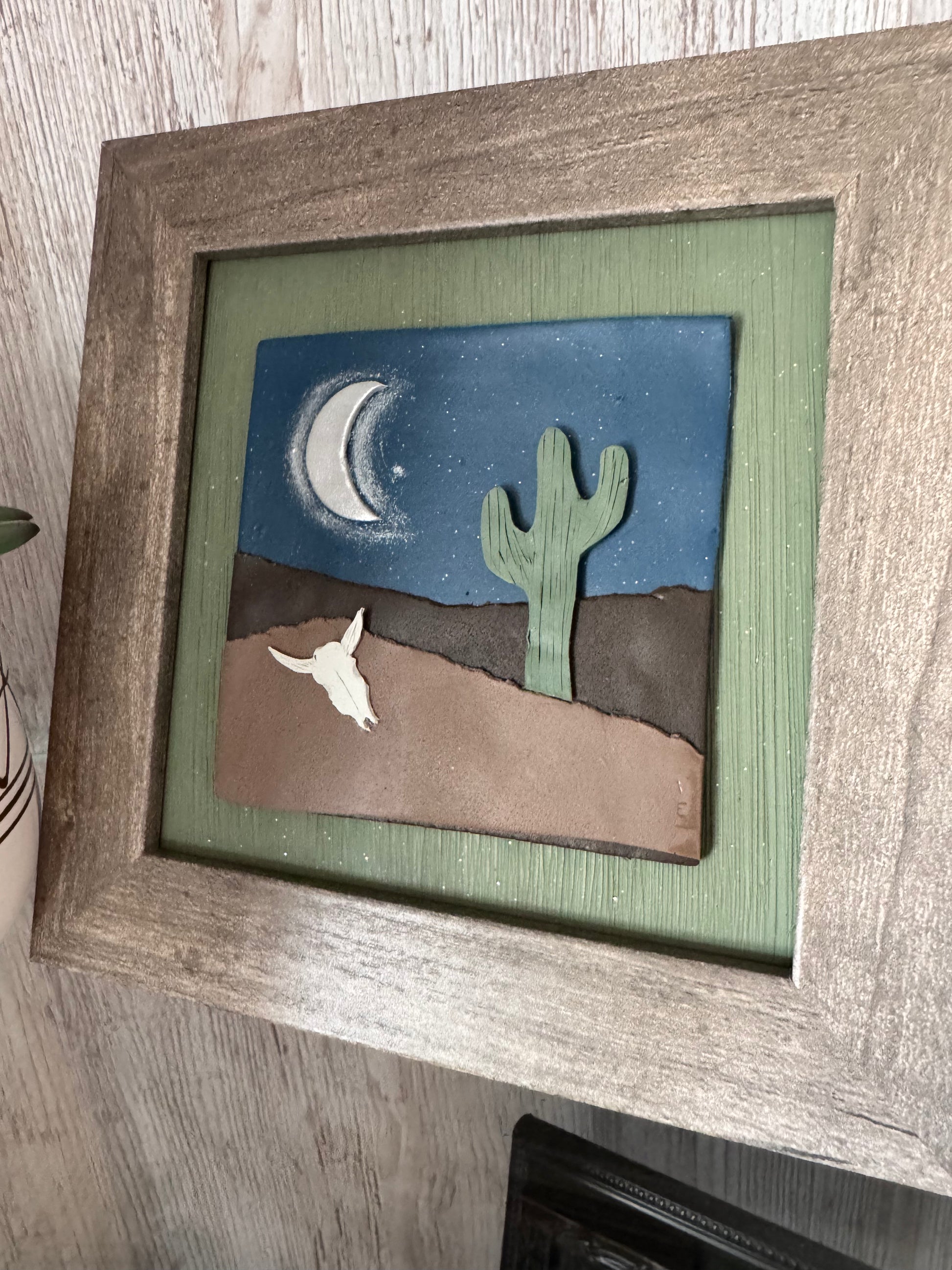 Desert Night Scene 5x5” Framed 3D Clay Art