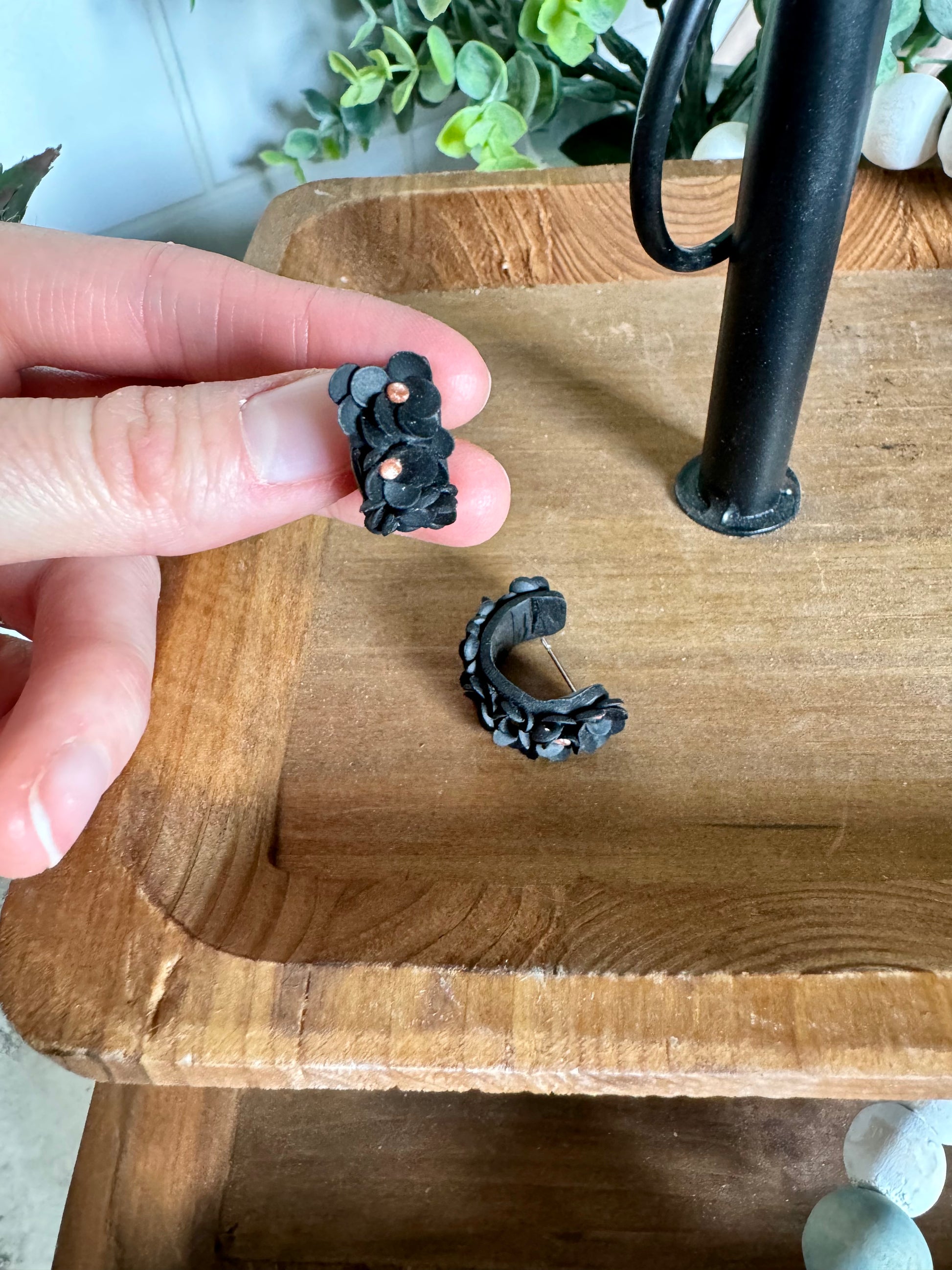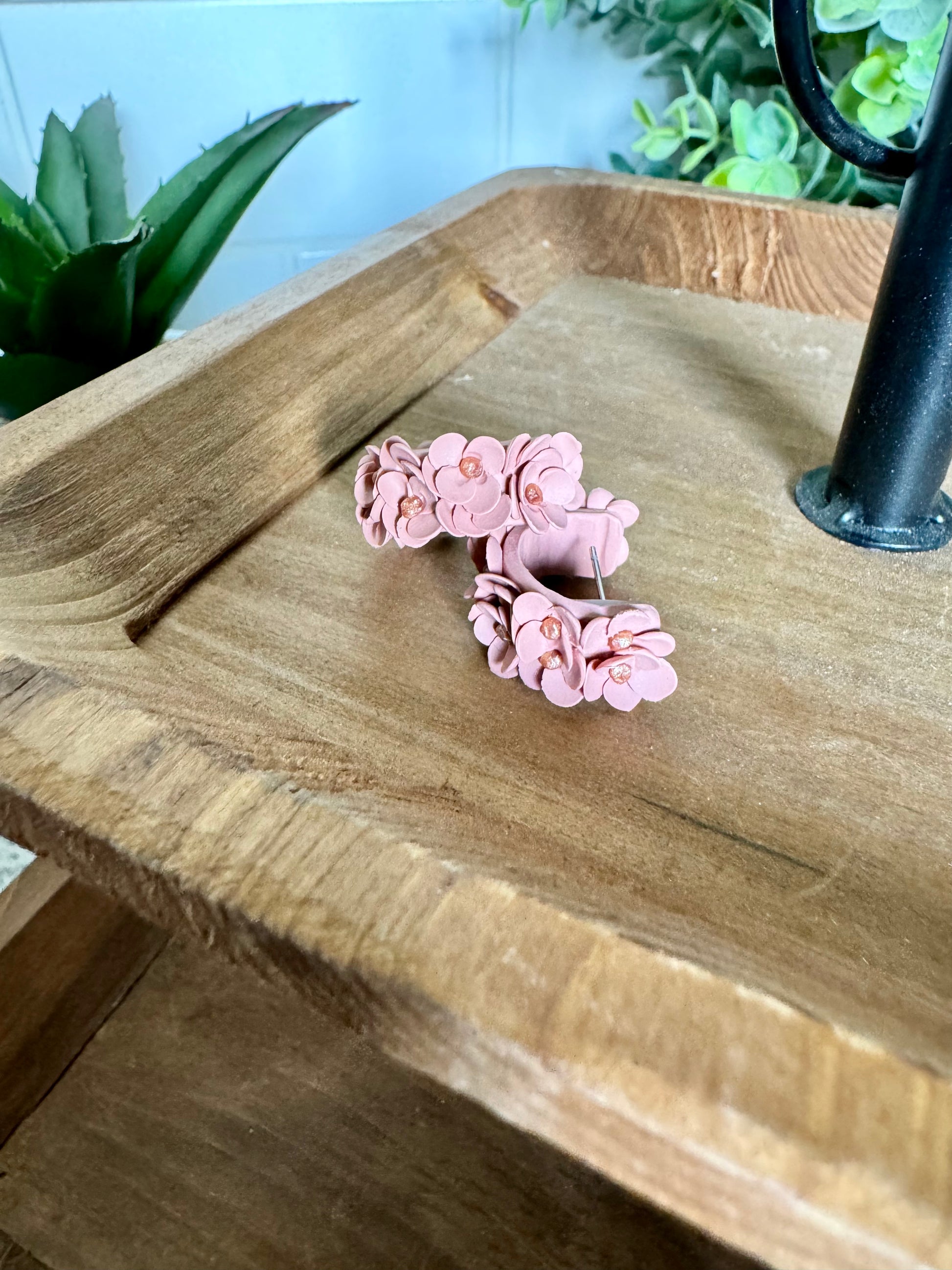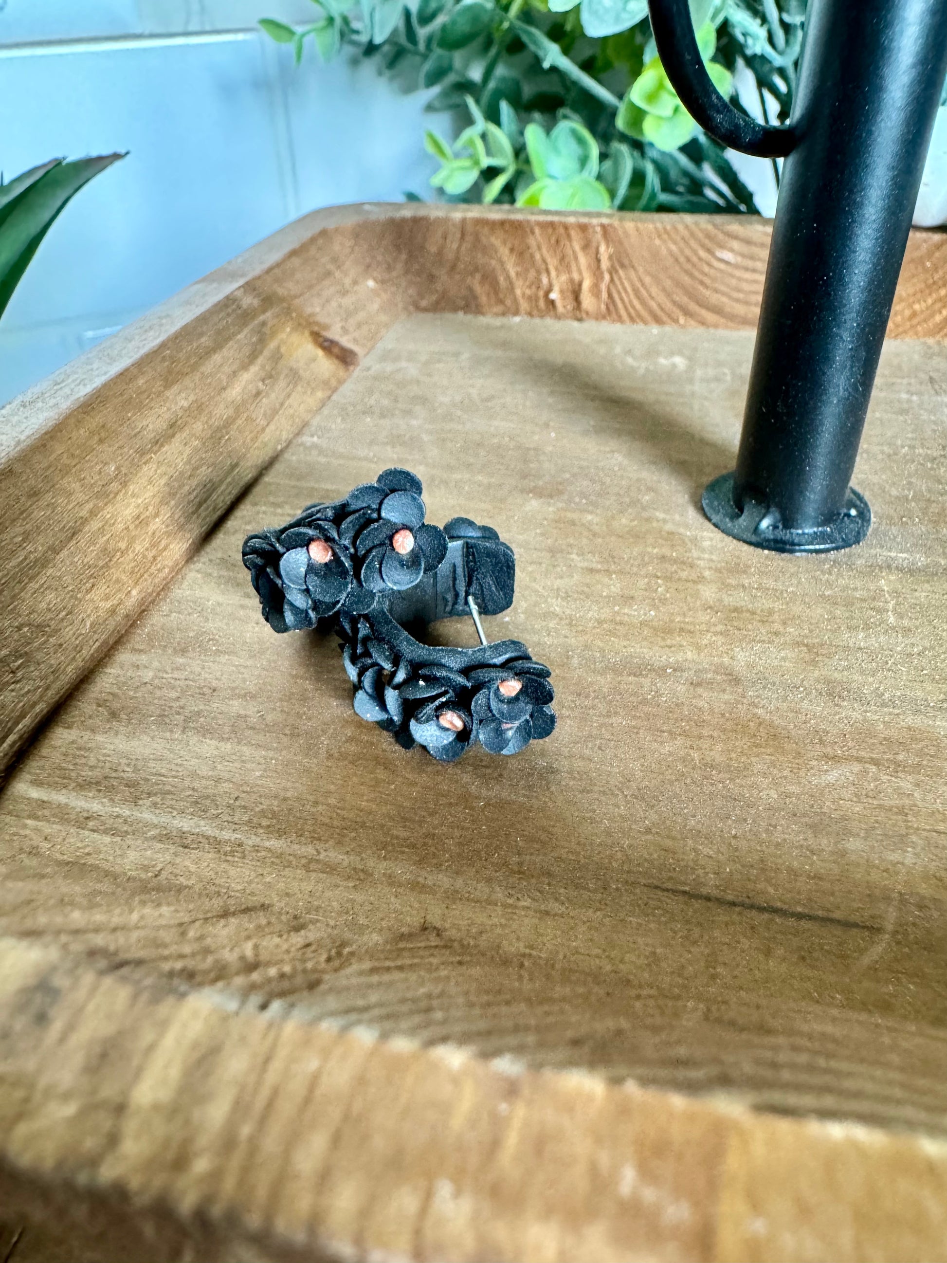Made to order: Adorable polymer clay flower huggie earrings! On 316L stainless steel posts. Flexibility allows for ease of inserting post into piercing. Gently bend the back of the earring down and slide the post into your earlobe, then attach the backing.