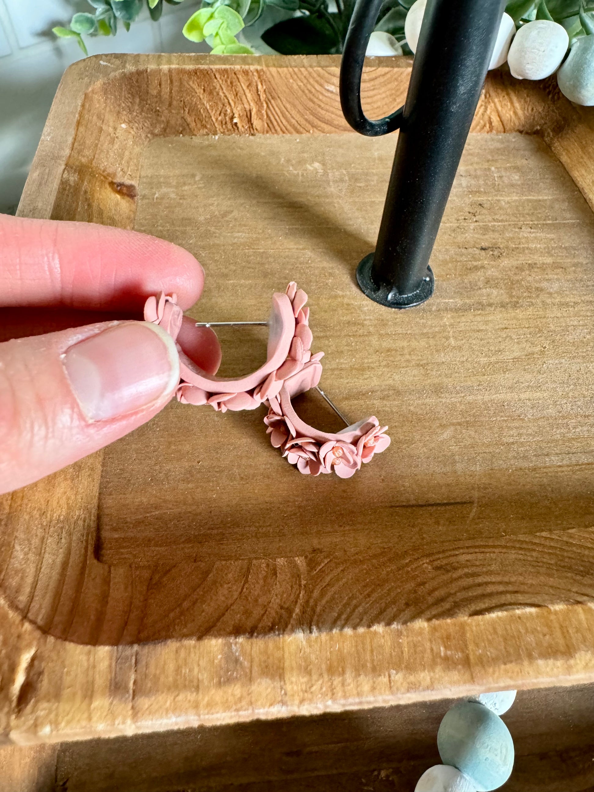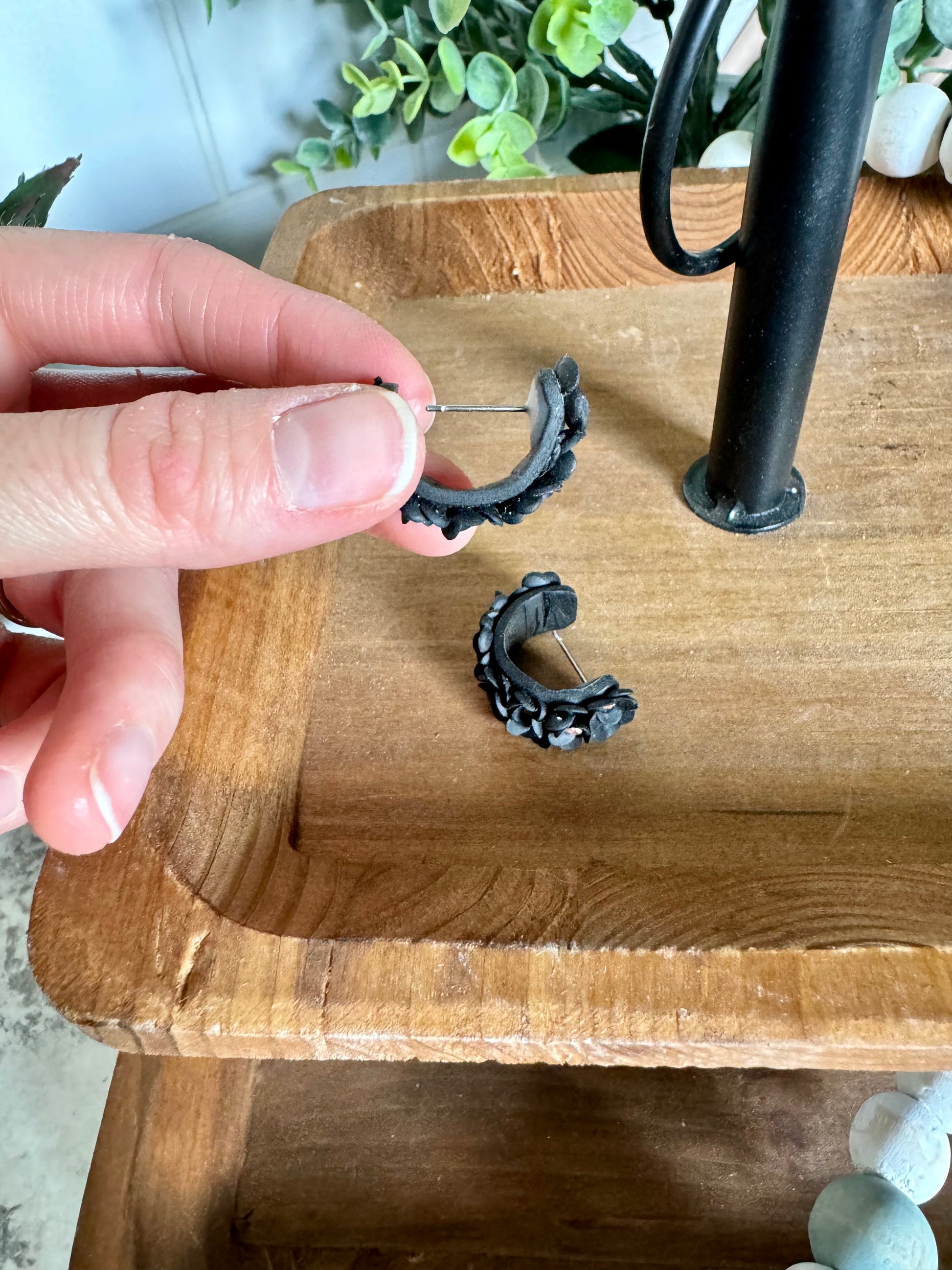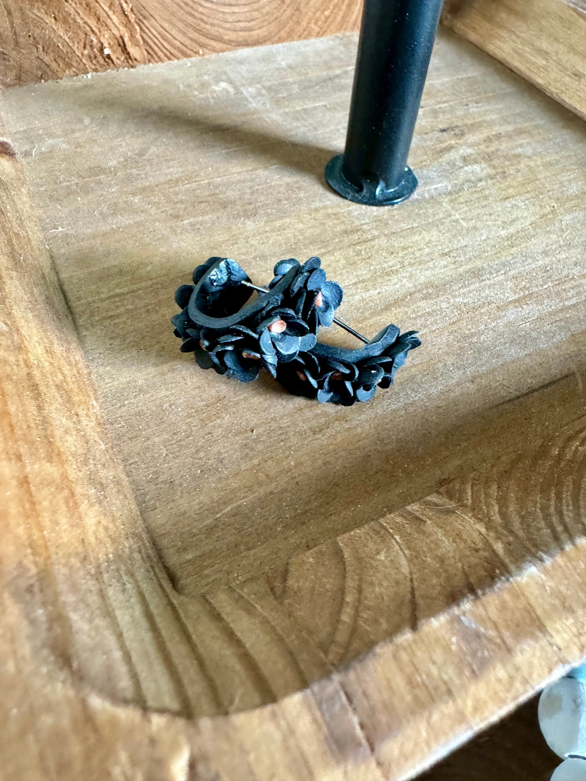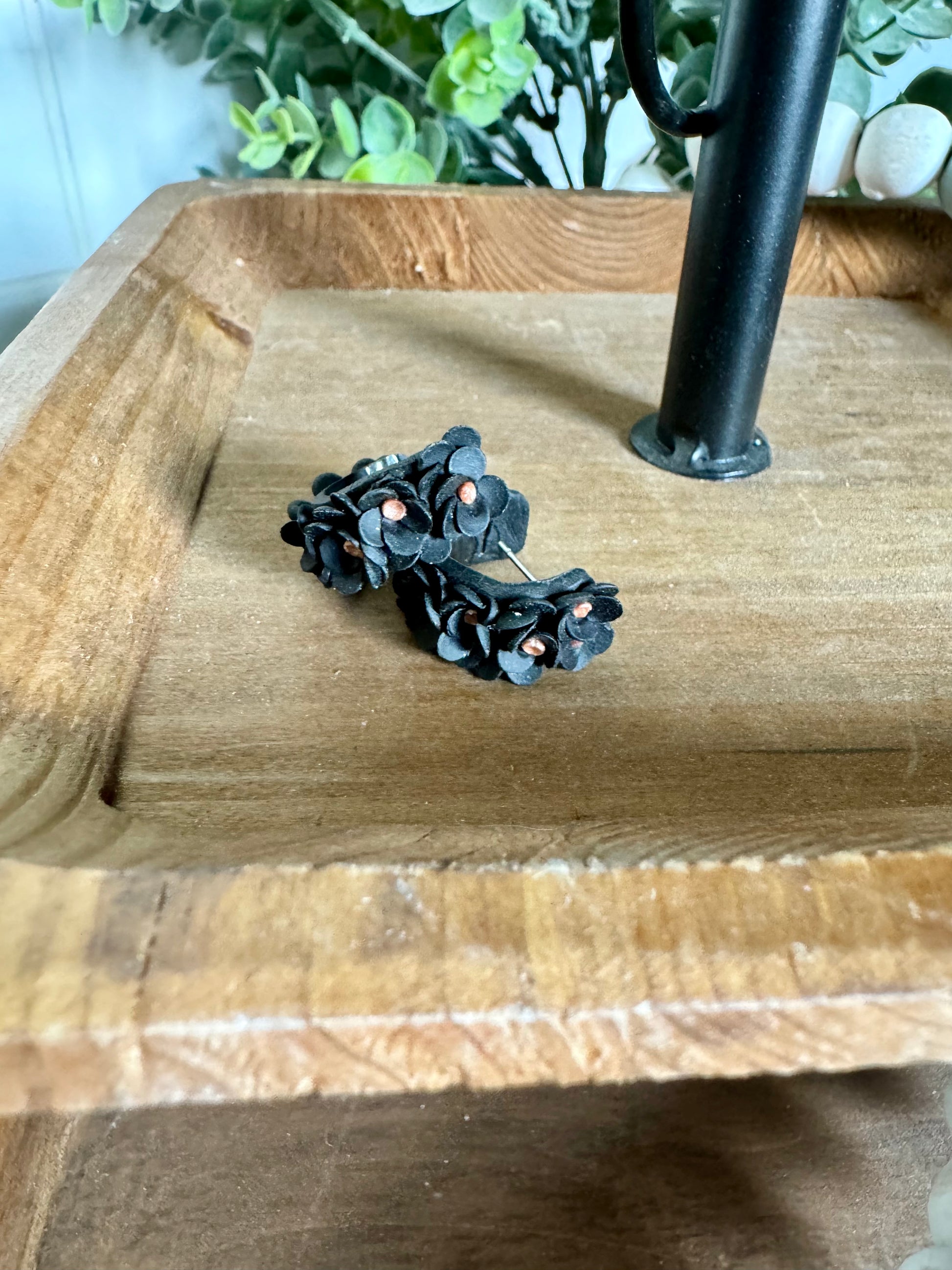 Made to order: Adorable polymer clay flower huggie earrings! On 316L stainless steel posts. Flexibility allows for ease of inserting post into piercing. Gently bend the back of the earring down and slide the post into your earlobe, then attach the backing.