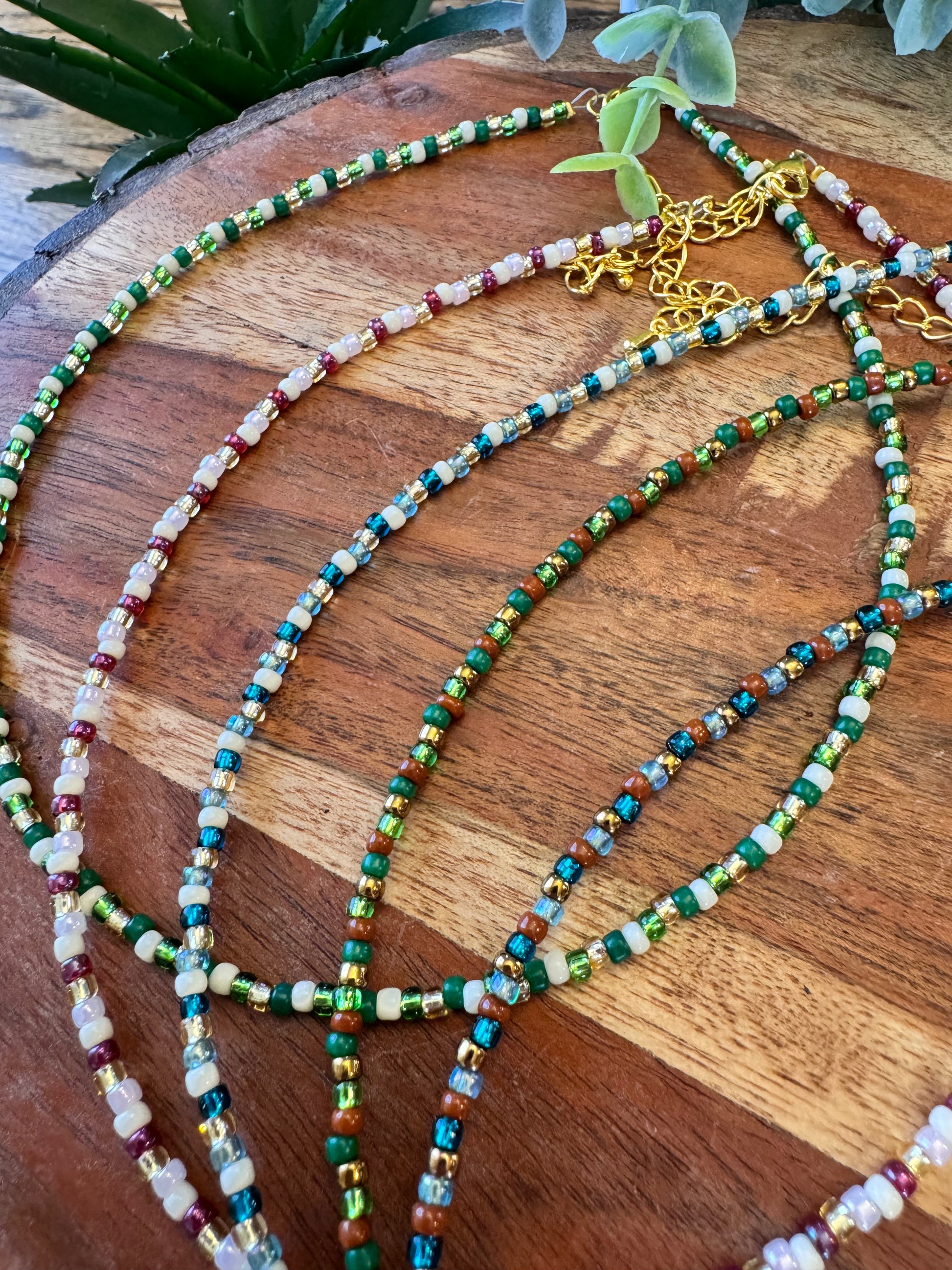 Seed bead necklaces approximately 14-16 inches in length.