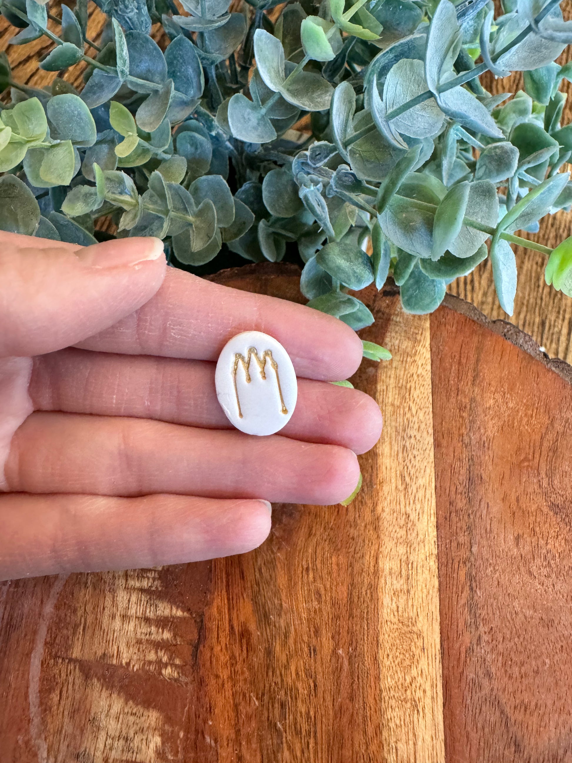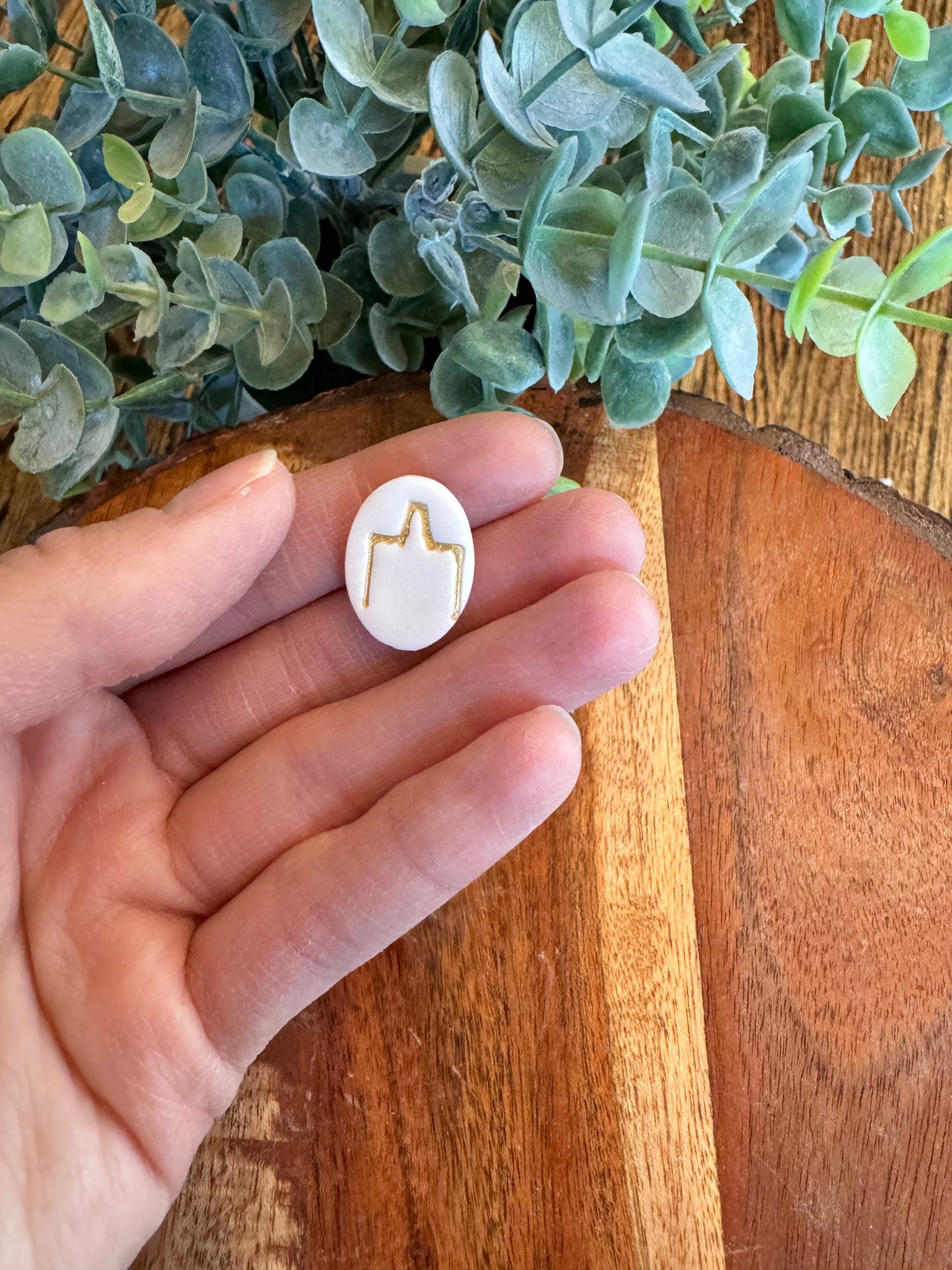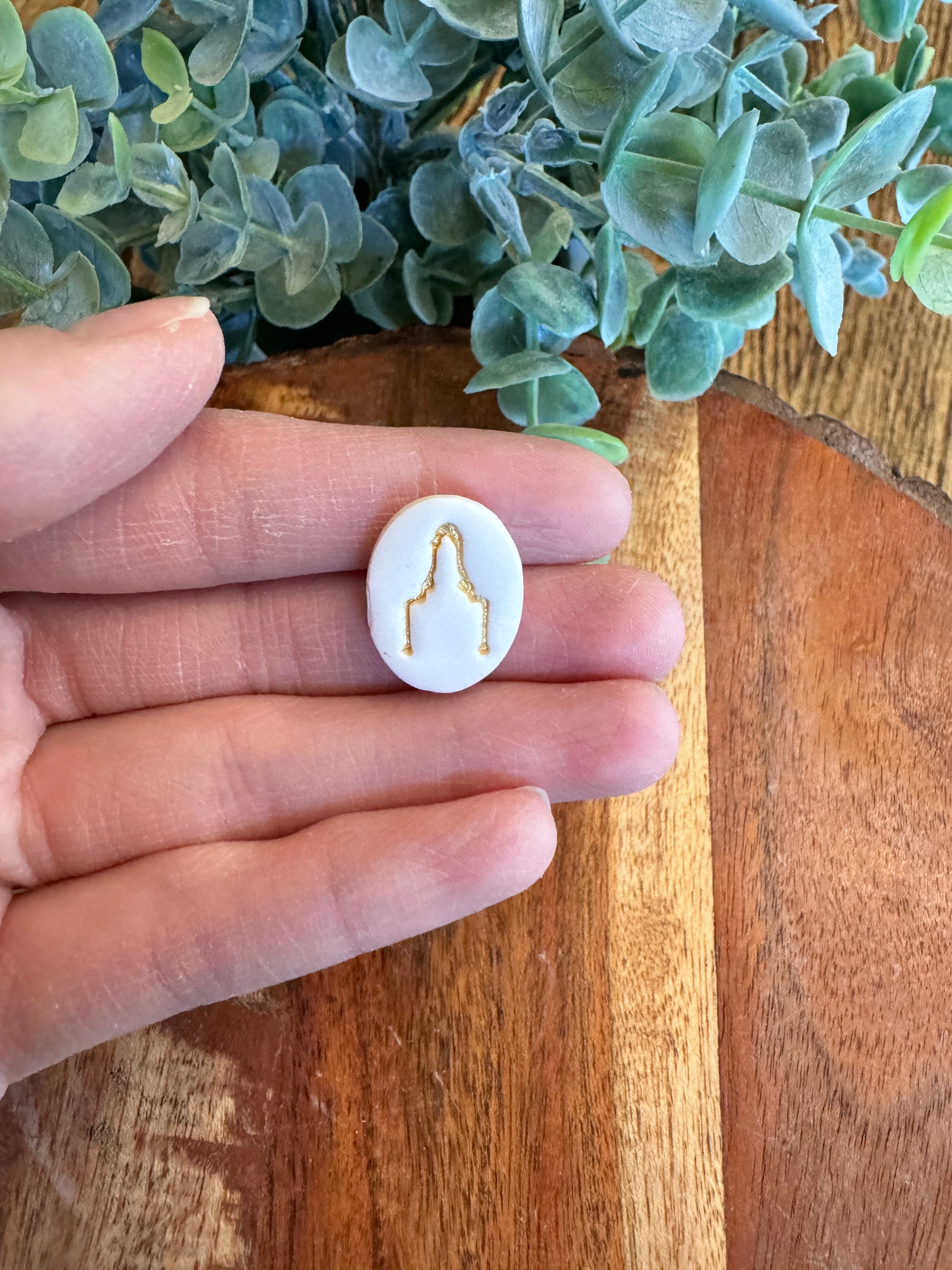 White and gold temple tie tacks. Can double as a pin: doesn’t have to be used only as a tie tack.