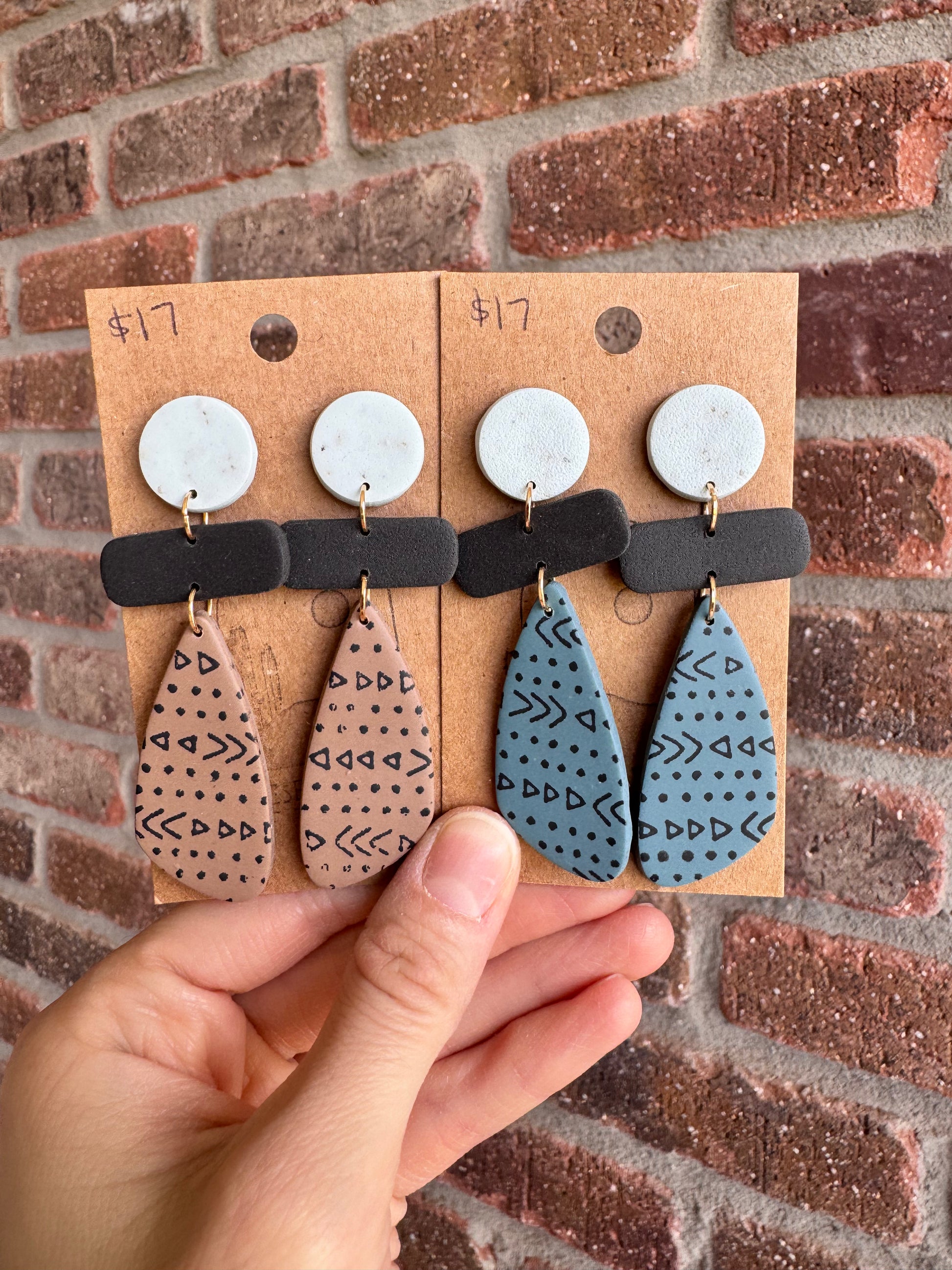 Clay earrings on surgical steel earring posts.