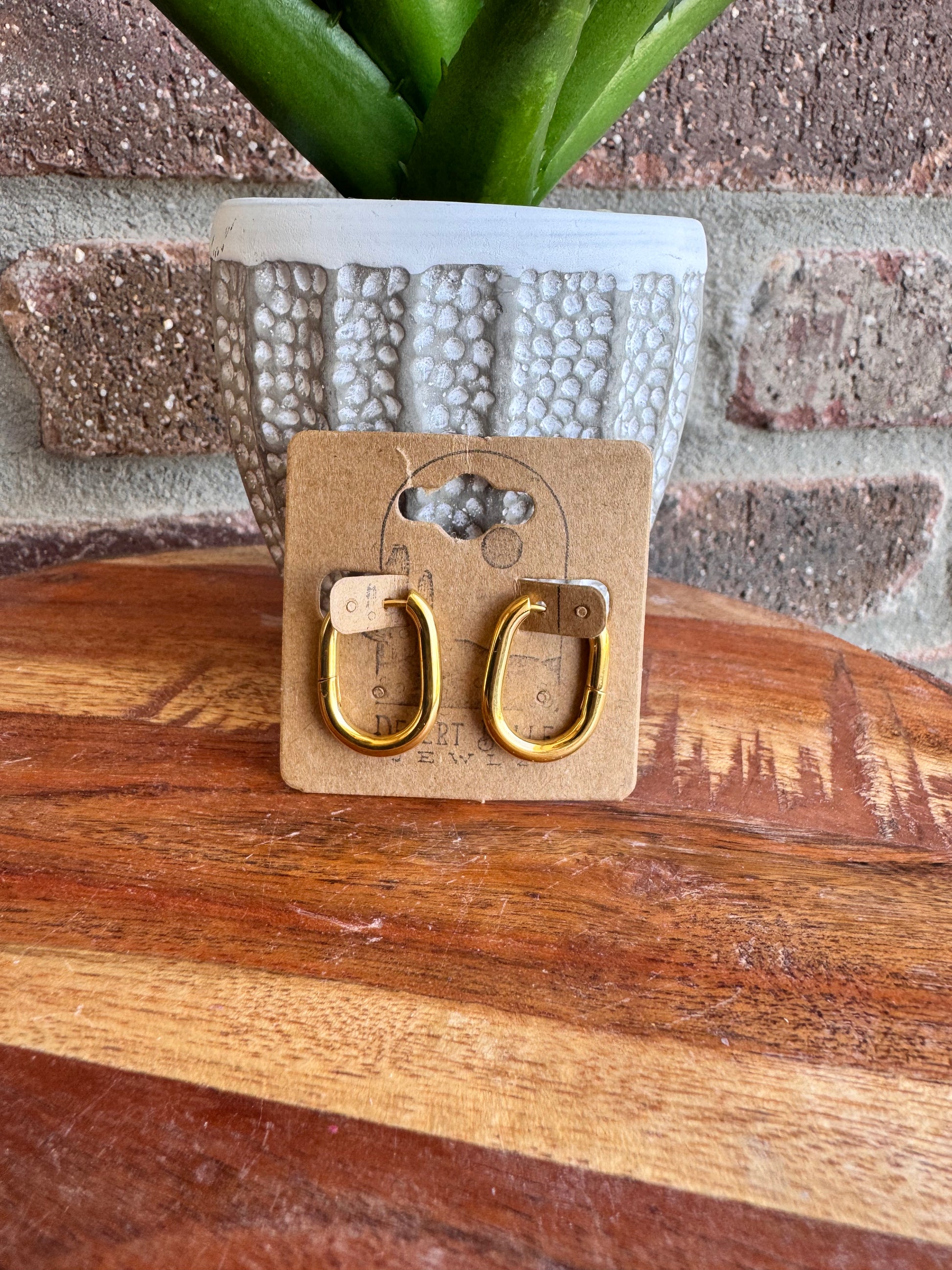 Gold plated 316L surgical stainless steel hoops. Rectangle shape hoops in two sizes - 12x18 mm and 2mm thick, or 17x22 mm and 3mm thick.