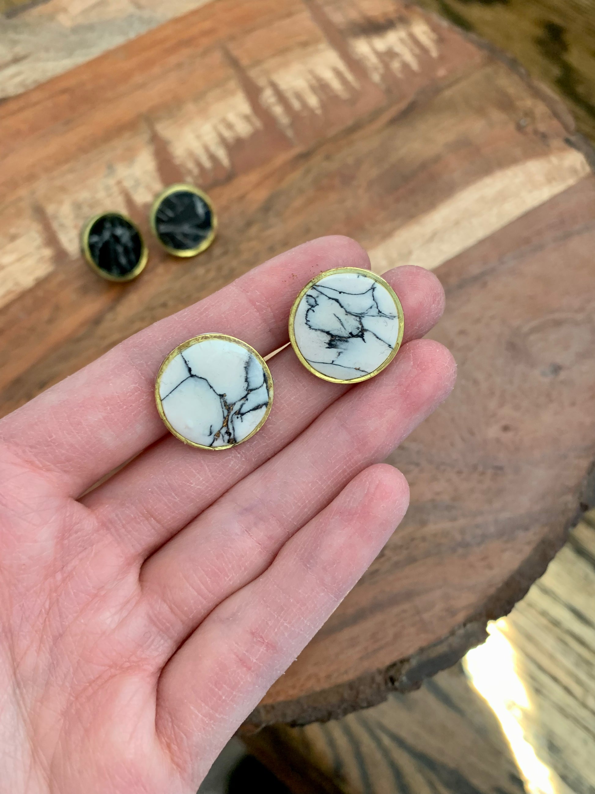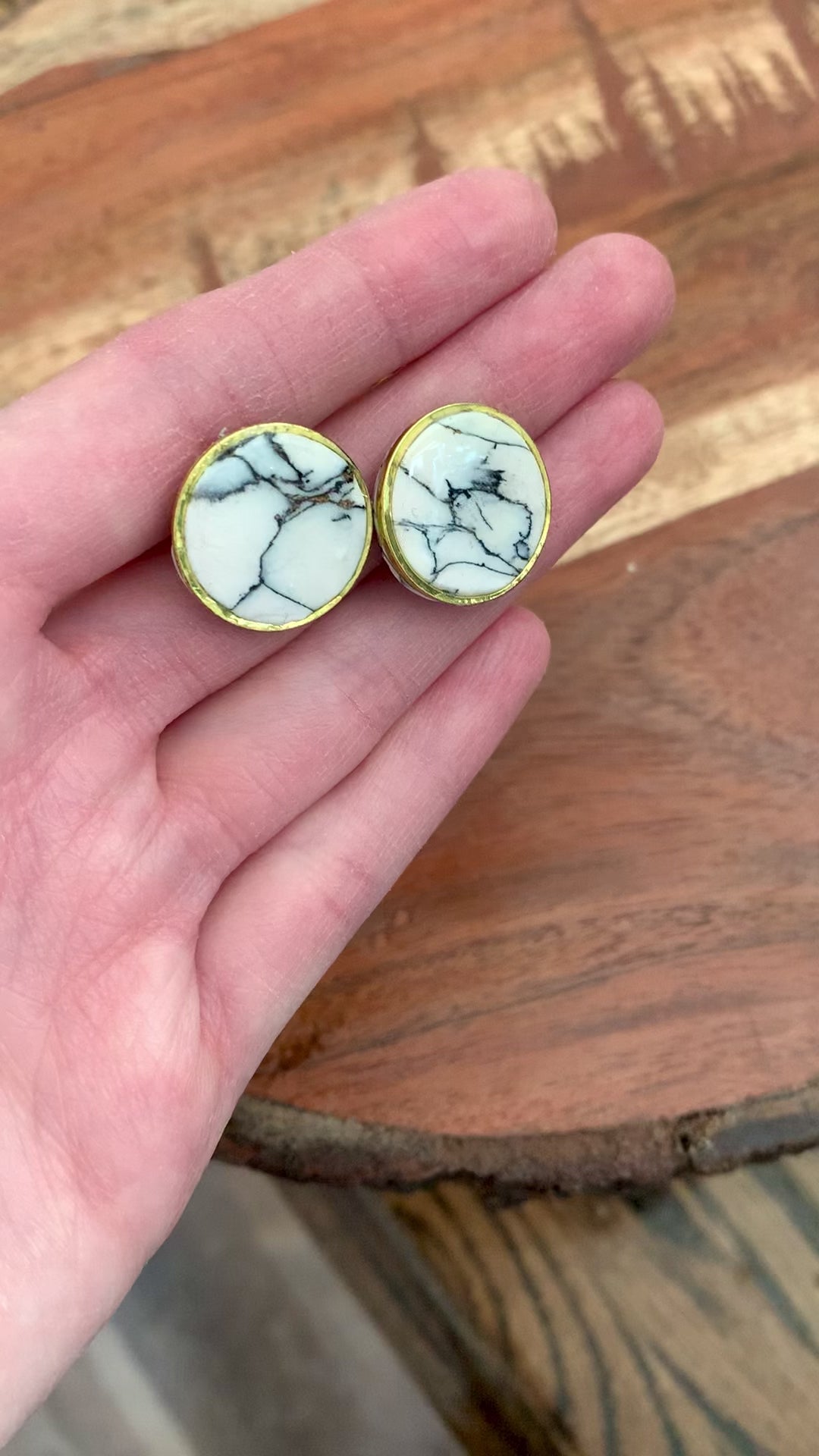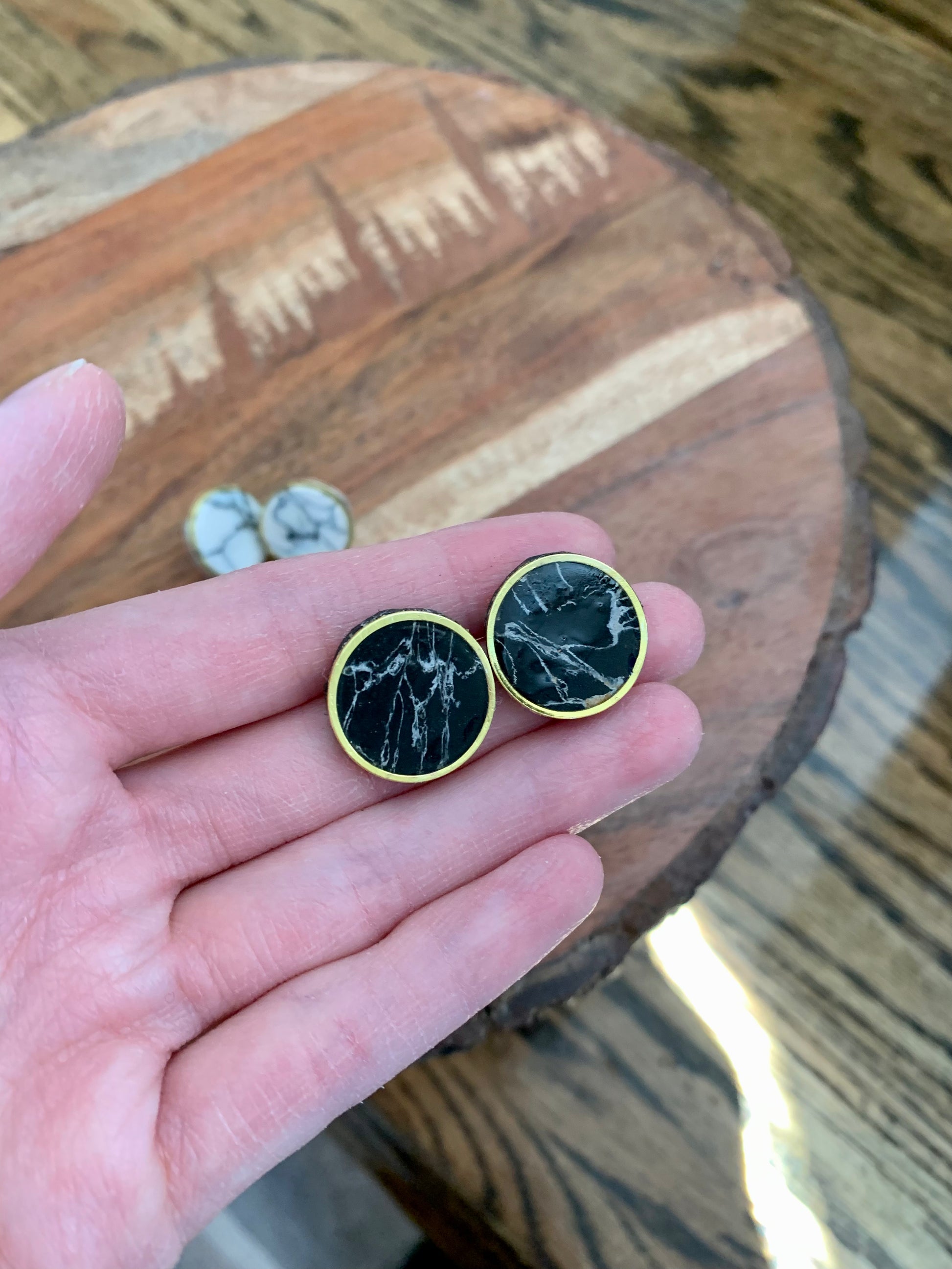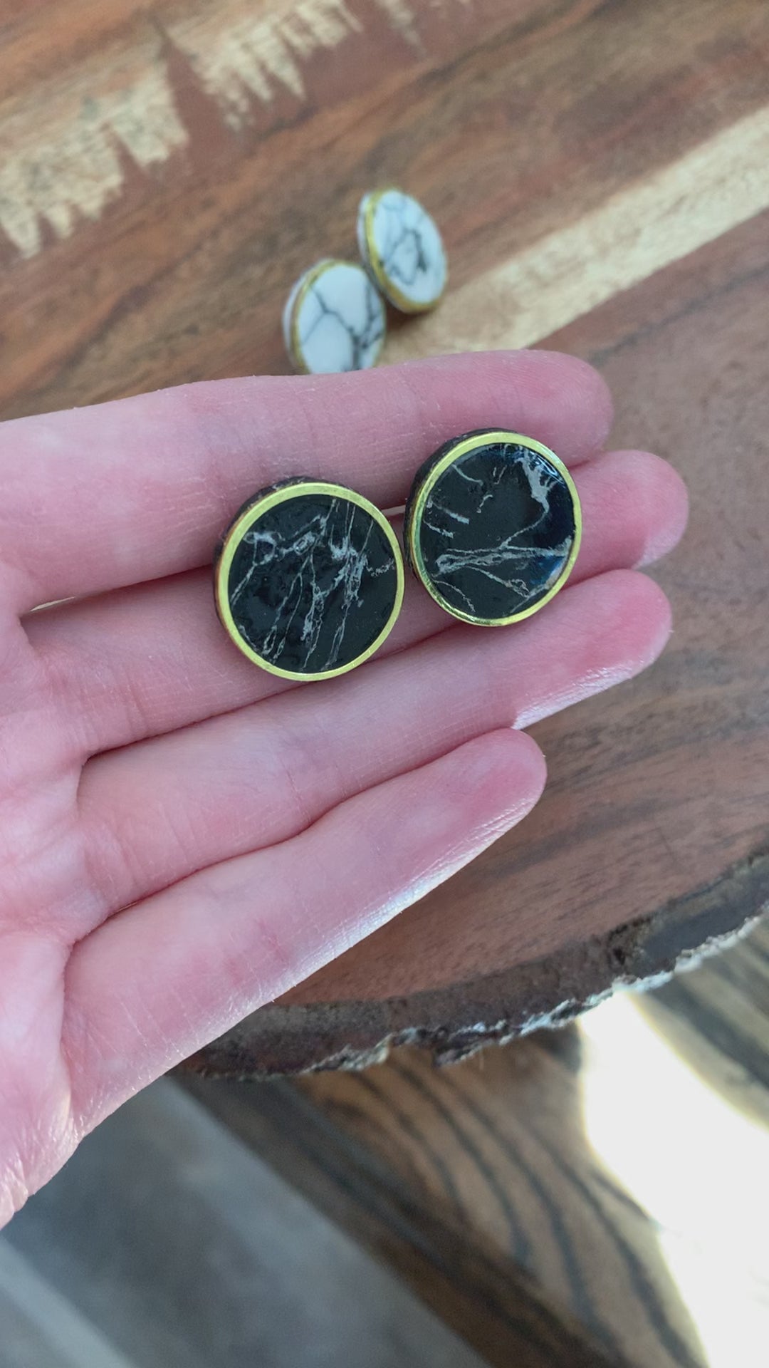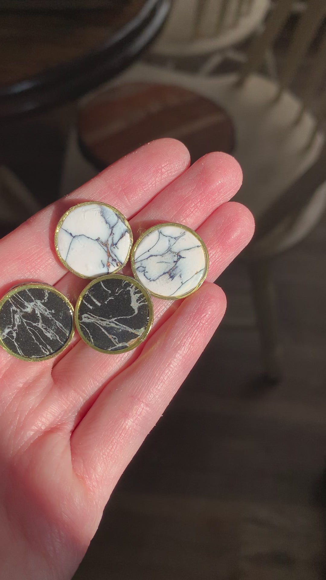 Three-quarter inch clay studs. Marbled with a gold metal circle around the edge.