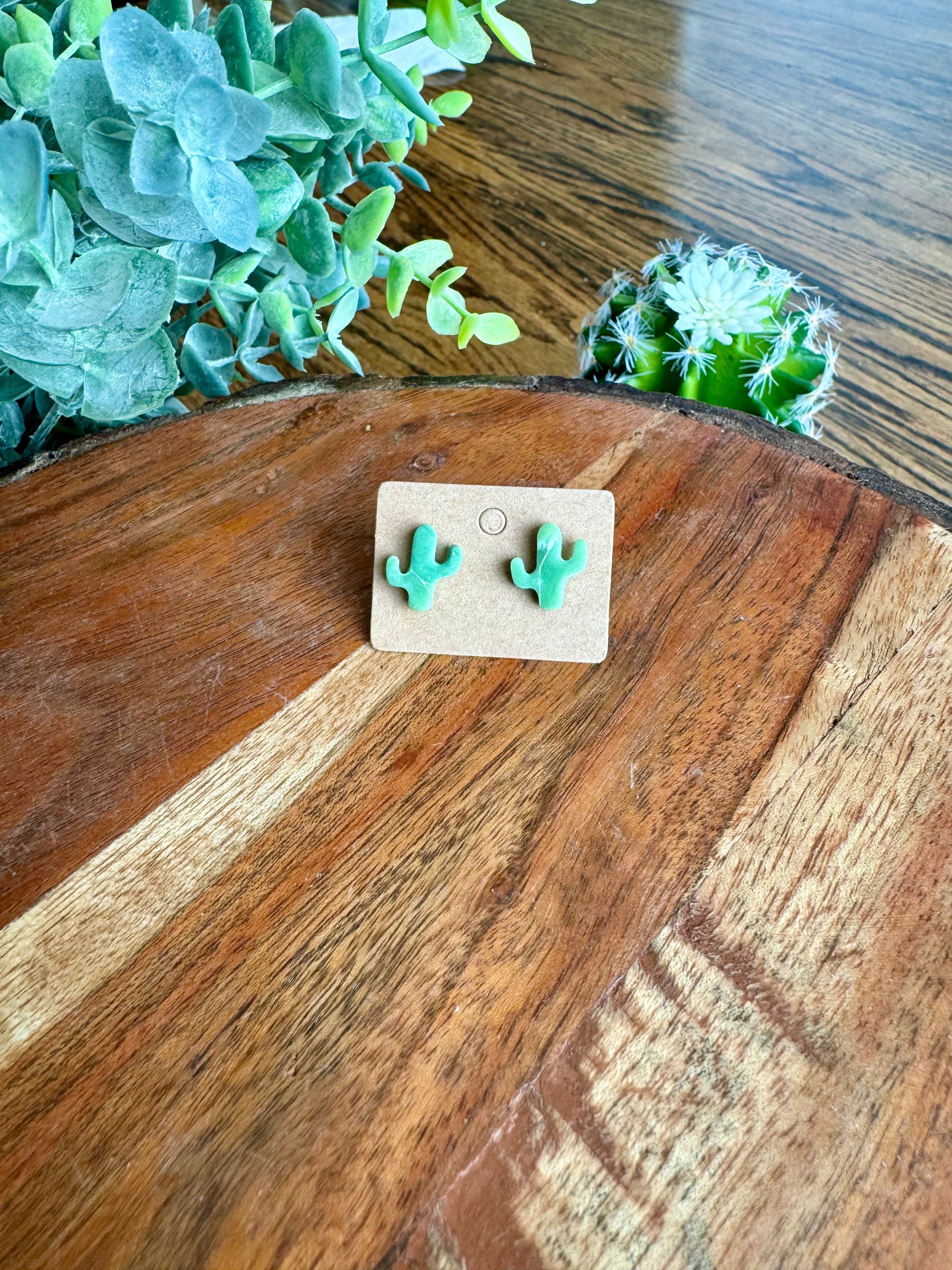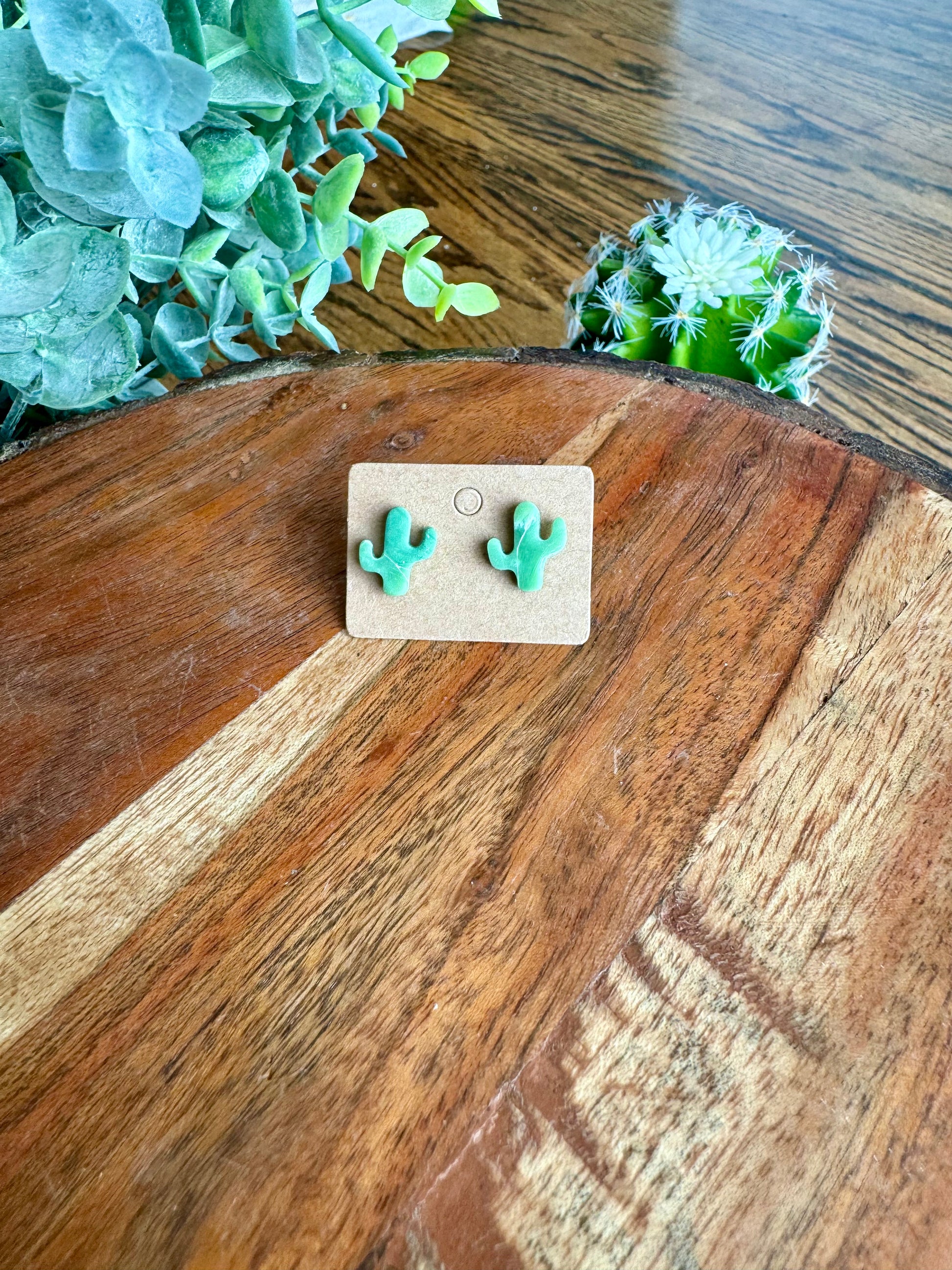Cactus earrings in green marble. Available in large or small dangles or studs. On stainless steel.