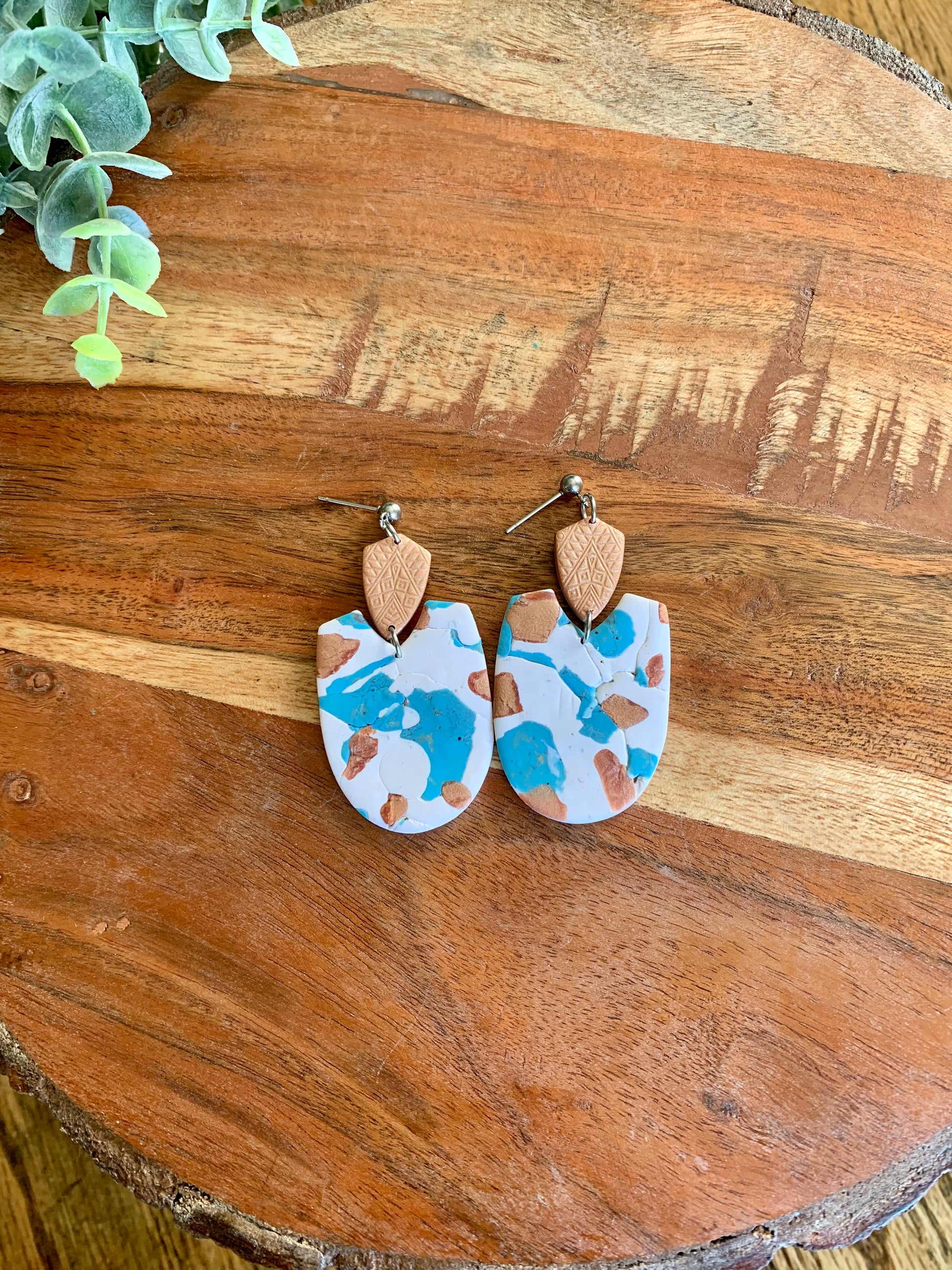 Dangles with copper and turquoise. Approximately 2.5” in drop length.