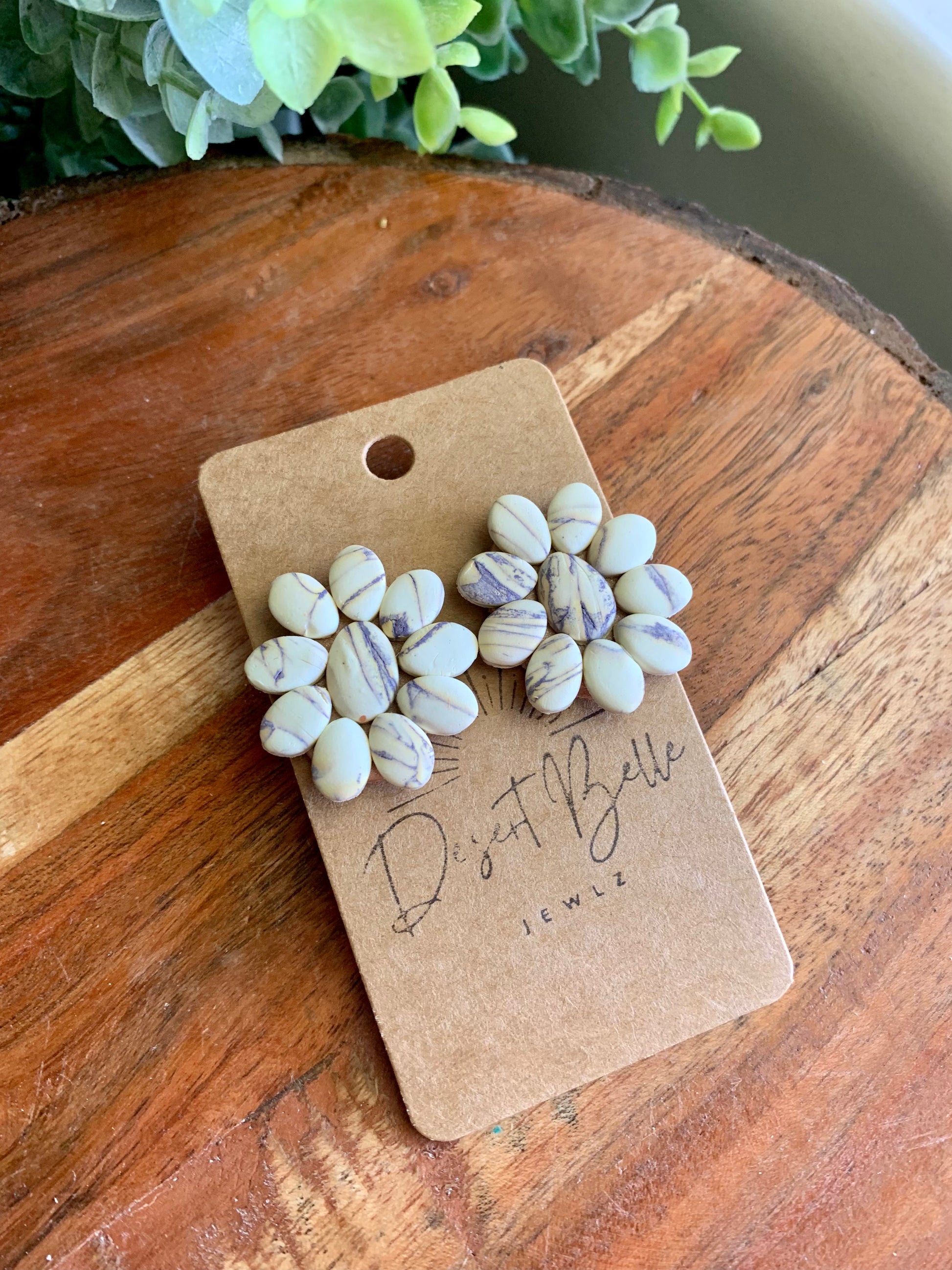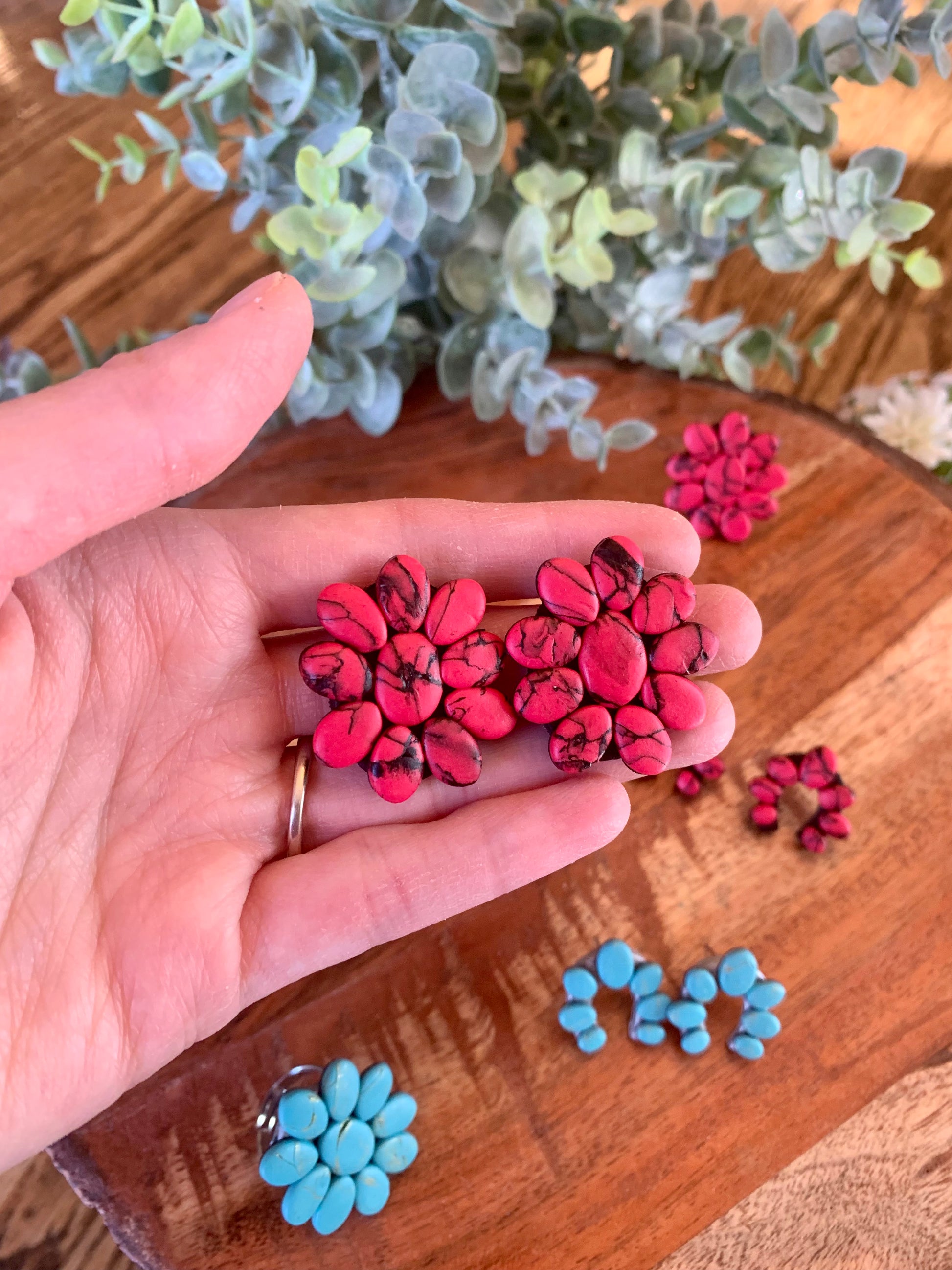 Clay statement studs inspired by southwestern style squash blossom cluster earrings. They are 1.25 inches in size.