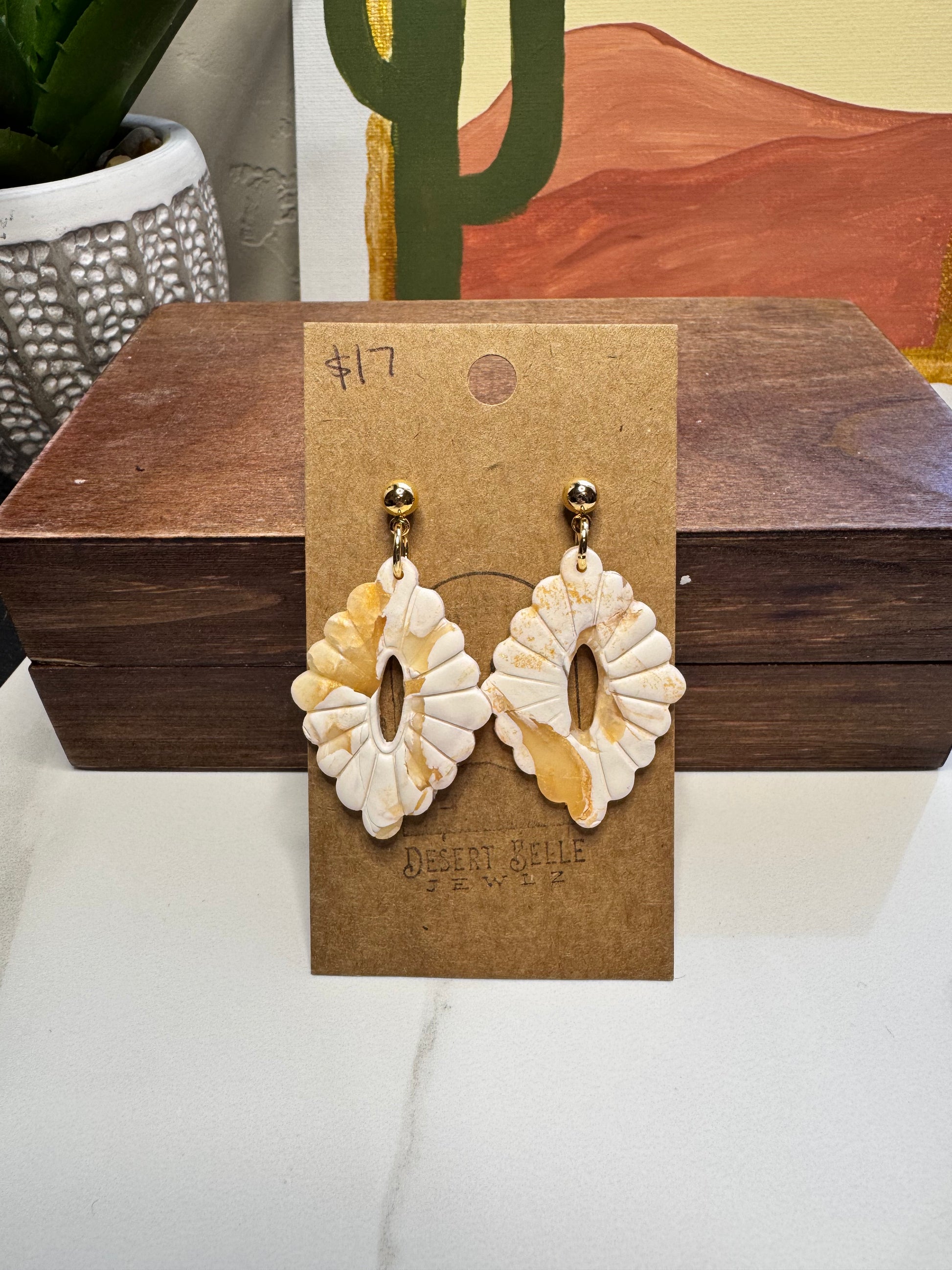 Pretty white, translucent and gold marble earrings on gold plated steel ball posts.
