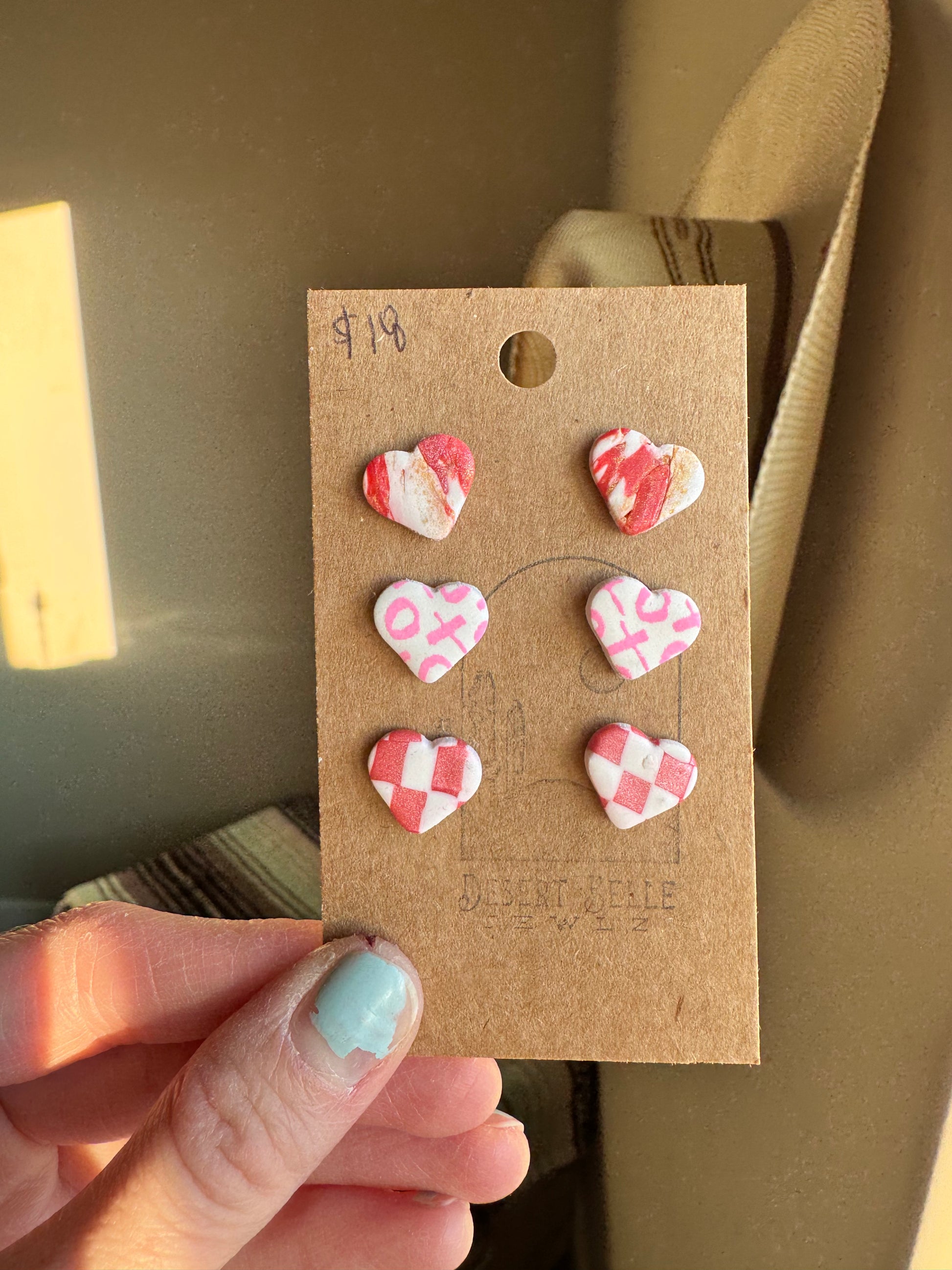A set of three pairs of cute heart studs on surgical steel posts.